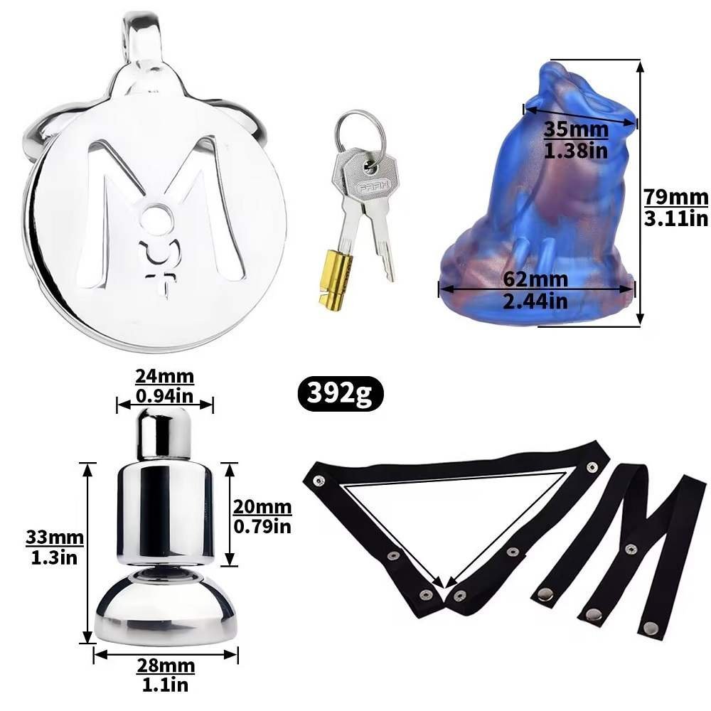 The solid steel cage provides secure control, while the silicone dildo offers a safe, comfortable wearing experience.