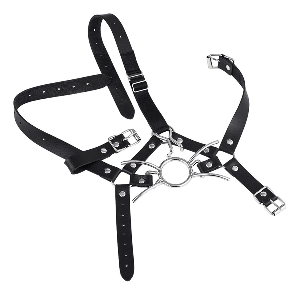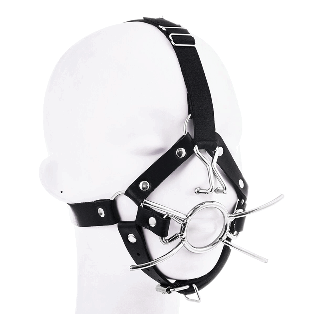 This BDSM Gag Harness features a dual-function design combining a mouth gag and a nose hook, created for consensual adult SM and roleplay. The adjustable harness provides a secure fit, while the mouth gag restricts speech and the nose hook adds an extra element of control and sensory awareness, enhancing dominance and submission dynamics.