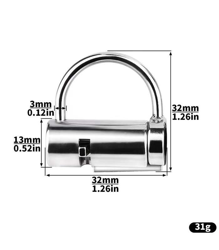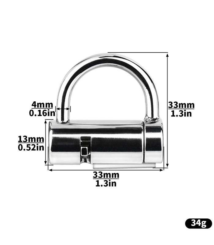 Designed specifically for PA-pierced wearers, this PA padlock is crafted from solid 304 stainless steel for strength, safety, and long-term durability. The compact weighted design creates a subtle downward pull, adding a noticeable sense of gravity and restraint without compromising comfort. Smoothly polished for hygienic wear, it locks securely in place and is ideal for those who appreciate controlled weight and pressure.