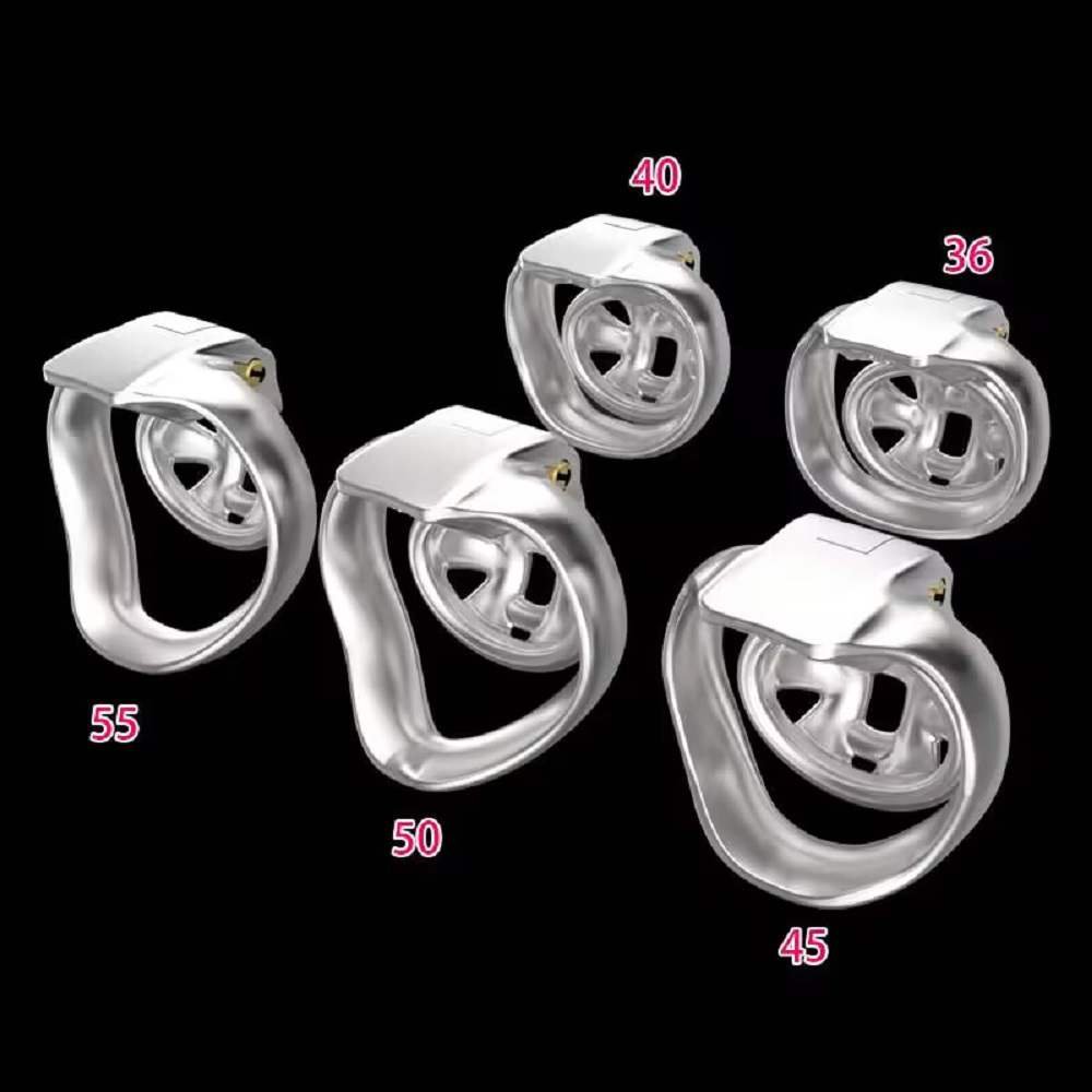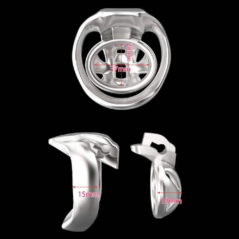 The Titan Grip Stainless Steel Chastity Cage features a unique widened locking ring design that increases skin contact area for better comfort and stability.